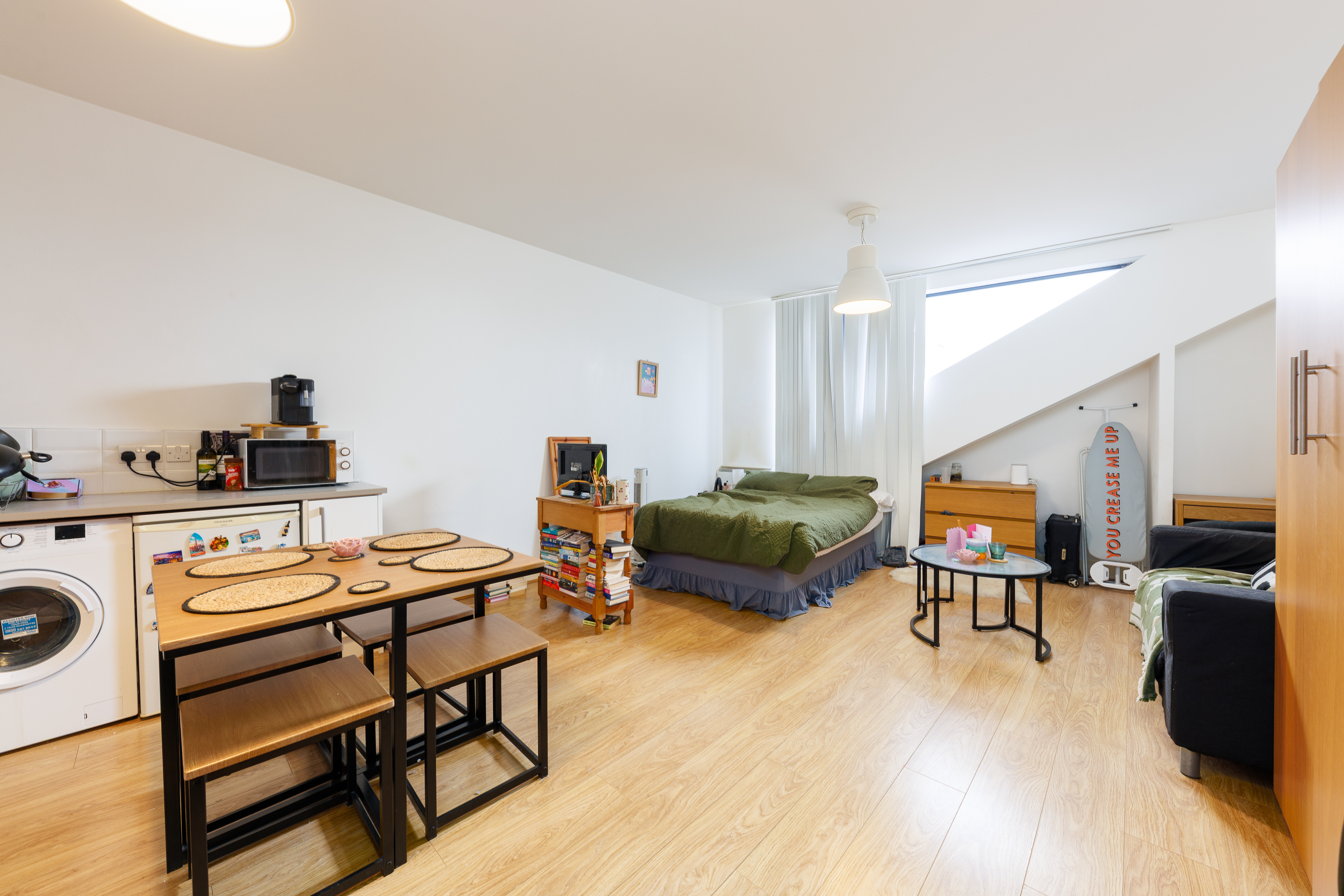 This wharehouse conversion studio offers a large open plan studio with seprate bathroom. The apartment is flooded with natural light.