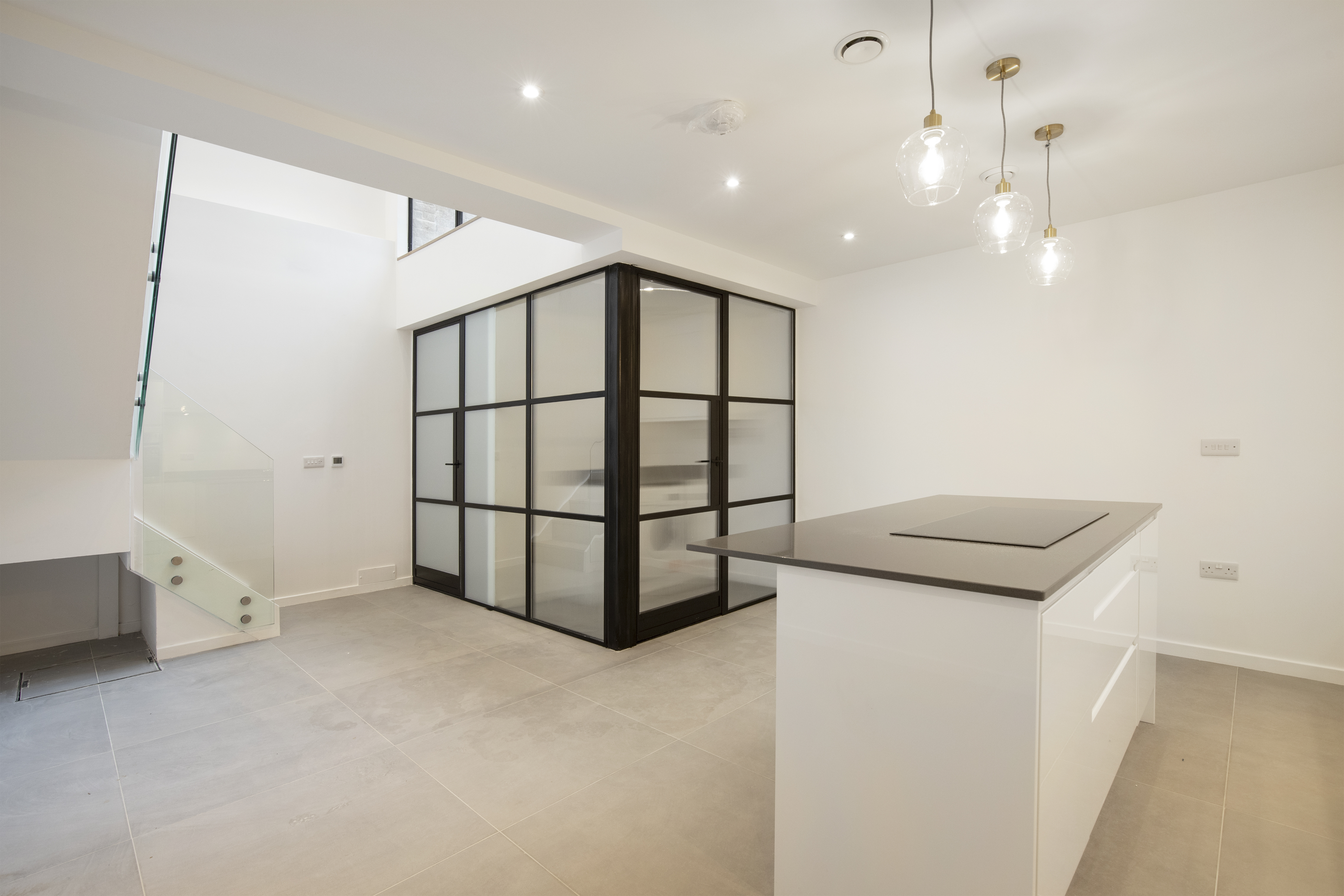 The moment you walk through the front door you will be amazed by the bright/ open space that covers two floors with a large glass wall and glass balustrades. The house is tucked away in a corner of the development and is truly inspiring.